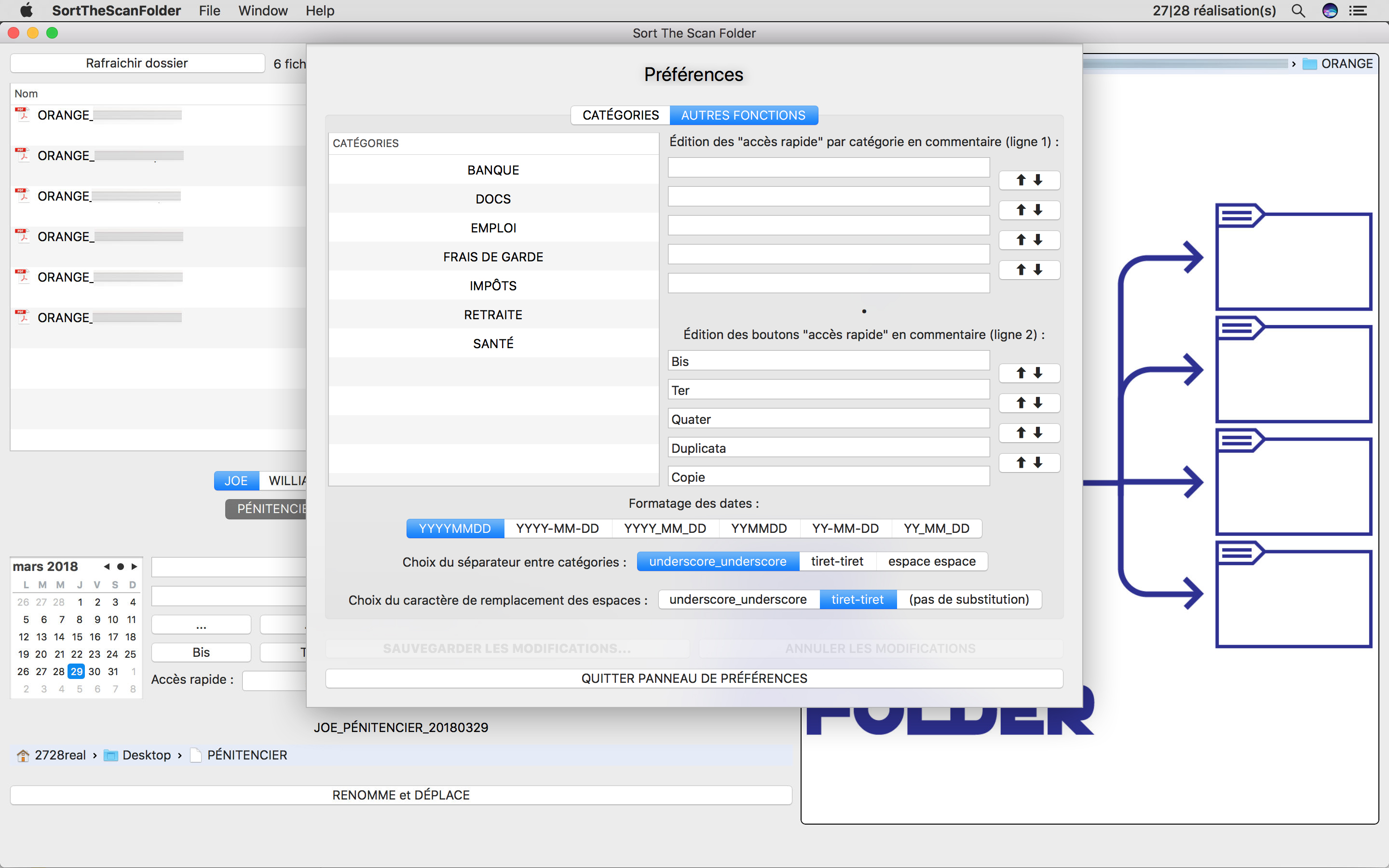 En fonction de son propriétaire/destinataire, de différentes catégories et sous-catégories, de la date ou de la période concernée (via un clic sur le calendrier), de champs de texte libre ou pré-remplis, vous aurez un renommage automatisé et, surtout, standardisé !
